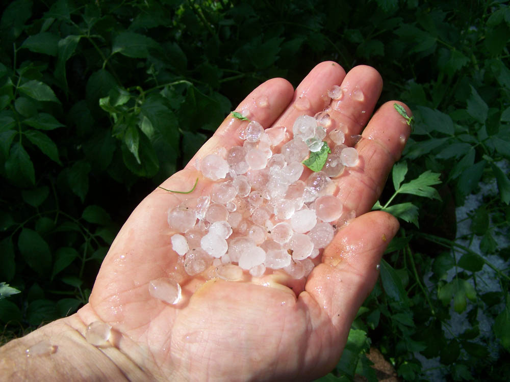 W maju atakuje nas grad. Młode rośliny warzywne w ogrodzie zostają mocno poturbowane, a większe liście podziurawione, ale na szczęście nie ma poważnych uszkodzeń upraw.