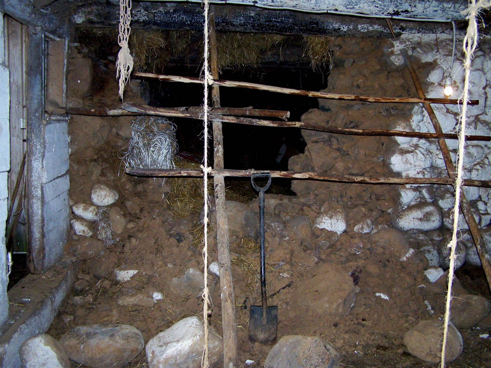 Jakby nie wystarczyło, że na polach są tony kamieni do posprzątania, pewnego czerwcowego poranka dno kurnika zostało pokryte dużymi kamieniami. Część kamiennego muru zawaliła się, ponieważ duże kamienie fundamentu zostały podkopane przez świnie w latach 90-tych. Musimy szybko usunąć kamienie i tymczasowo naprawić ścianę, aby kurnik mógł znów funkcjonować.